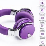 Active Noise Cancelling Bluetooth Headphones with Microphone Deep Bass Wireless , Over Ear, Comfortable Protein Earpads, 30 Hours Playtime for Travel/Work, Purple