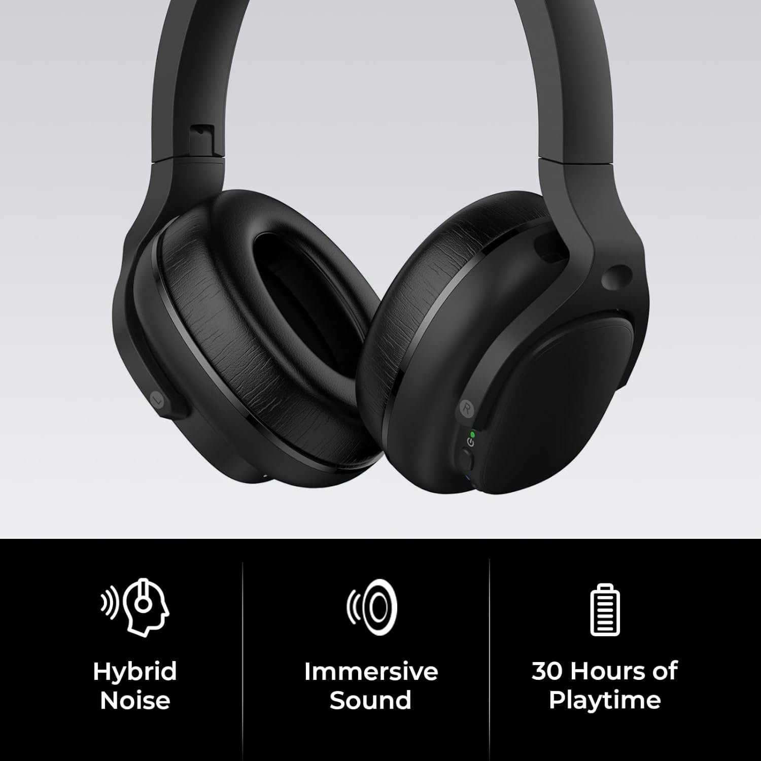 Hybrid Active Noise Cancelling Headphones Wireless Bluetooth Headphones with Immersive Sound, Foldable Headphones with Comfortable Fit, Carry Case, 30H Playtime, Matte Black